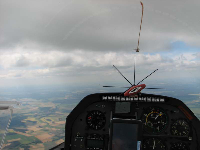 Wolkenstraßen und gute Steigwerte bei manchmal engen und nicht einfach zu findenden Bärten erlauben uns wieder knackige Schnitte von zeitweilig über 100km/h. Noch einmal interessant wurde es gegen Nachmittag, da eine Abschirmung aus Westen kommen sollte, die uns eventuell den Heimweg abschneidet. Doch bei den zahlreichen Aufreihungen konnte viel geradeaus geflogen werden, so daß die meisten heimkamen.