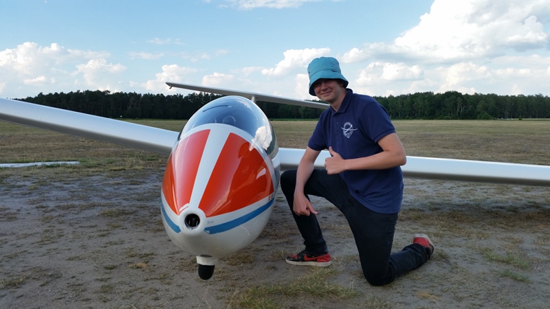 Da bleiben natürlich auch die Erfolge in unserer Ausbildung nicht aus. Einen wichtigen Schritt in seiner Fliegerkarriere konnte Maurice Bär am 25.07. nehmen: Den ersten Alleinflug. Maurice ist seit Jahren begeisterter Modellflieger im LSV und hat im Laufe der Neugestaltung der Modellflugrubrik einigen Kontakt mir Webmaster Martin gehabt. So kam es, dass er dann ab und an auch mal auf dem Flugplatz in Wilsche vorbeikam. Es dauerte nicht lange, bis er auch mal in einem Segelflugzeug Platz nahm und sich die Gegend von oben angesehen hat. Das hat dann offenbar so gefunkt, dass er gleich selbst mit der Ausbildung begonnen hat.